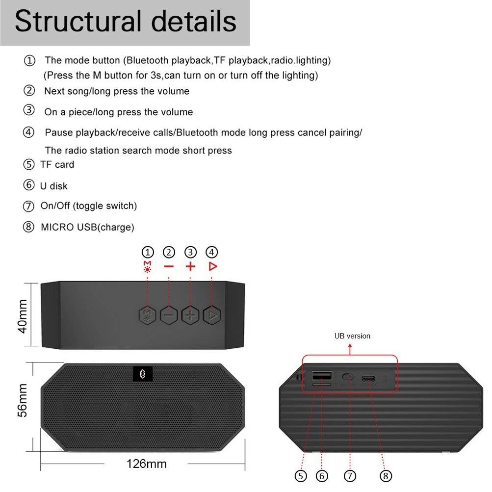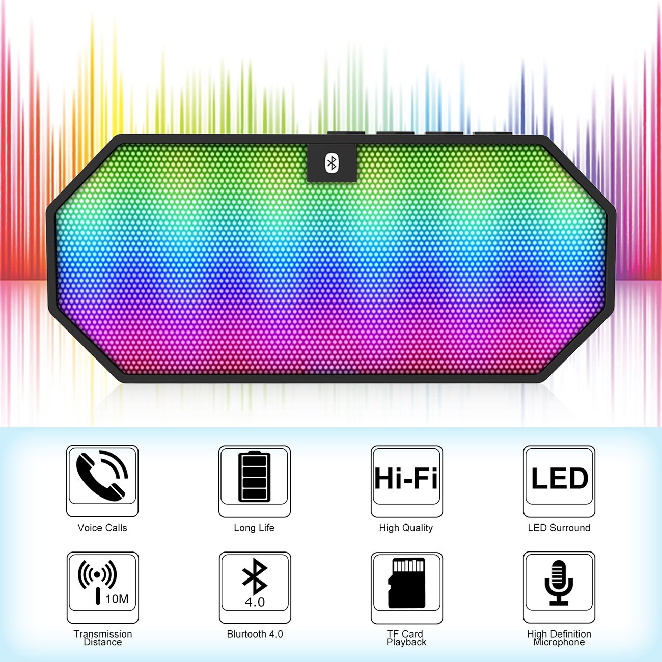 Esonstyle Mini Bluetooth ワイヤレス 高音質スピーカー LED光変化 通話可能/USB充電式/内蔵マイク搭載
