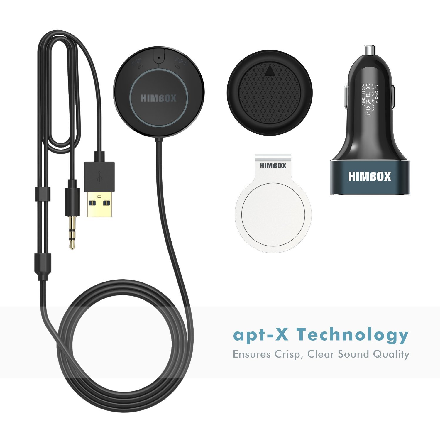 iClever Bluetooth オーディオレシーバー 車載 ハンズフリー カーキット 3.5mm USB 充電 ブラック Himbox HB01