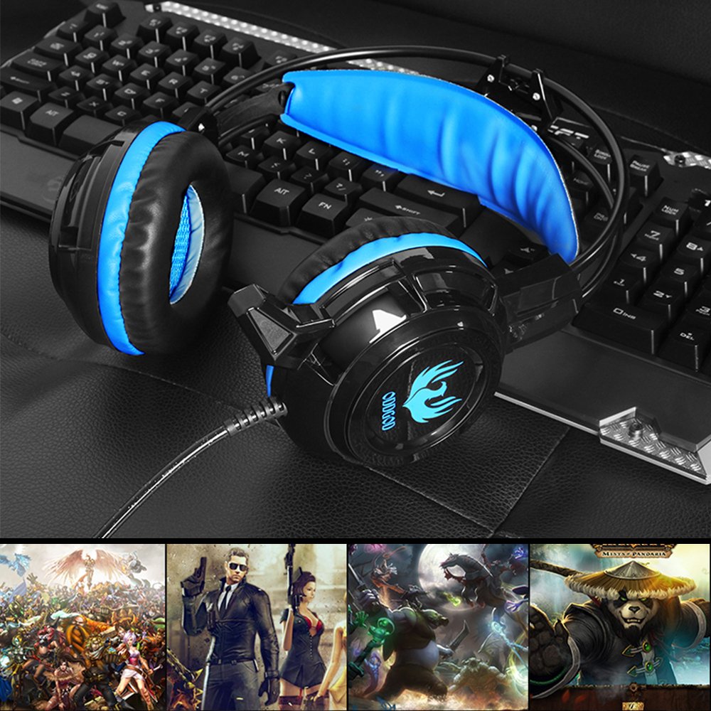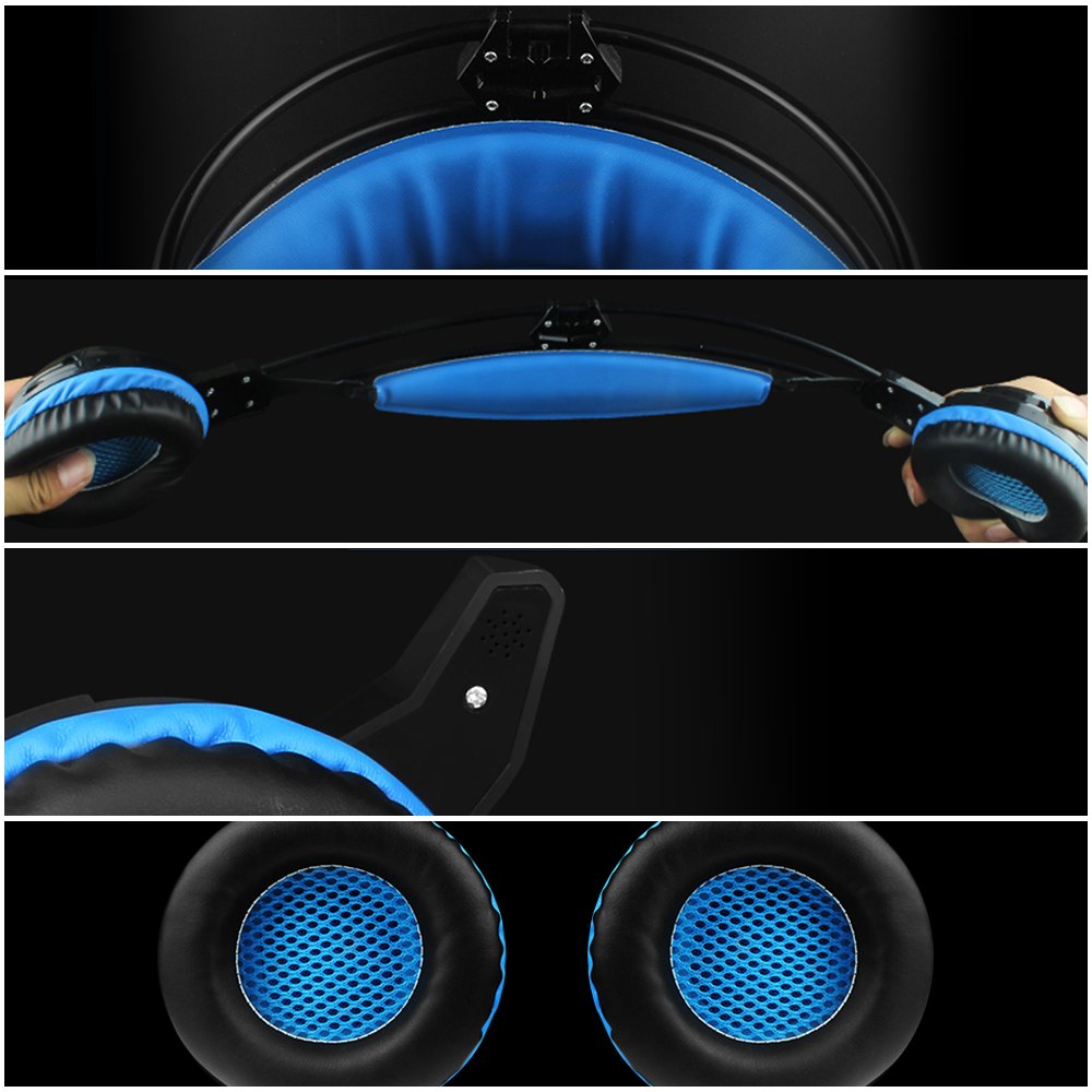 ゲーミングヘッドセット、AFUNTA G3ステレオ3.5mmジャックベースG3ゲームプレーヤーヘッドフォン浮上型ヘッドバンド ラップトップPC用 マイクとインラインコントロール付き ブラック&ブルー