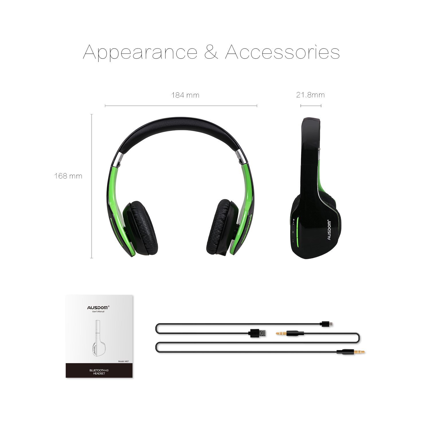 AUSDOM ワイヤレス ヘッドホン ブルートゥース ヘッドフォン Bluetooth ヘッドセット 折り畳み式 M07s グリーン
