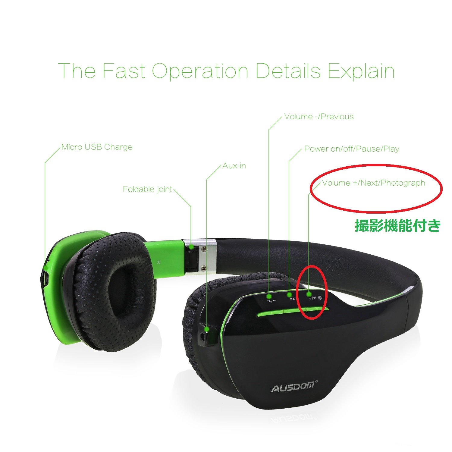 AUSDOM M07S ワイヤレスヘッドホン ブルートゥースヘッドフォン Bluetoothヘッドホン 撮影機能付き 折り畳み式
