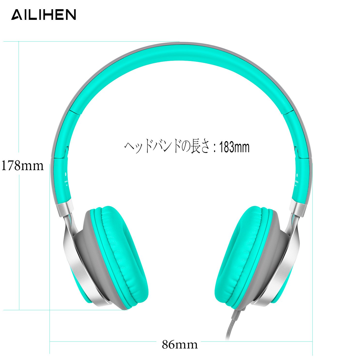Ailihen C8 ヘッドホン イヤホン 折り畳め リモコン ボリュームコントロール マイク付き (グレーブルー)