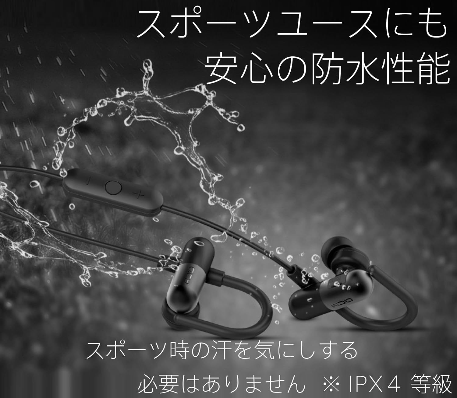 耳掛けイヤーフック構造でぴったりと密着する装着感と装着性が特徴。 ノイズキャンセル機能があるというが、たしかに遮音性は高めで目の前でTVをつけていても音は聞こえない。 音漏れも比較的少ない。