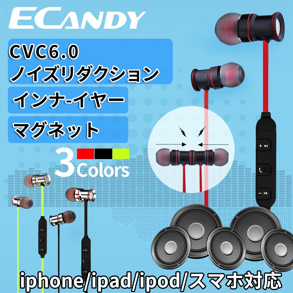 Ecandy ブルートゥース4.1スポーツイヤホン 防汗磁気ワイヤレスイヤホン マイク内蔵 ハンズフリー 通話 CSR 8645 CVC6.0 ノイズキャンセリング搭載 防汗 (ブラック)