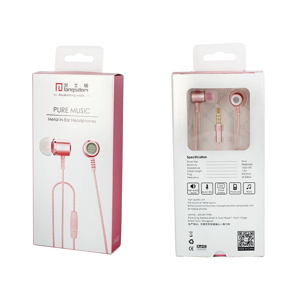 Langsdom 高音質金属イヤホン カナル型 重低音 ノイズ遮断 密閉 マイク ピンクゴールド M400