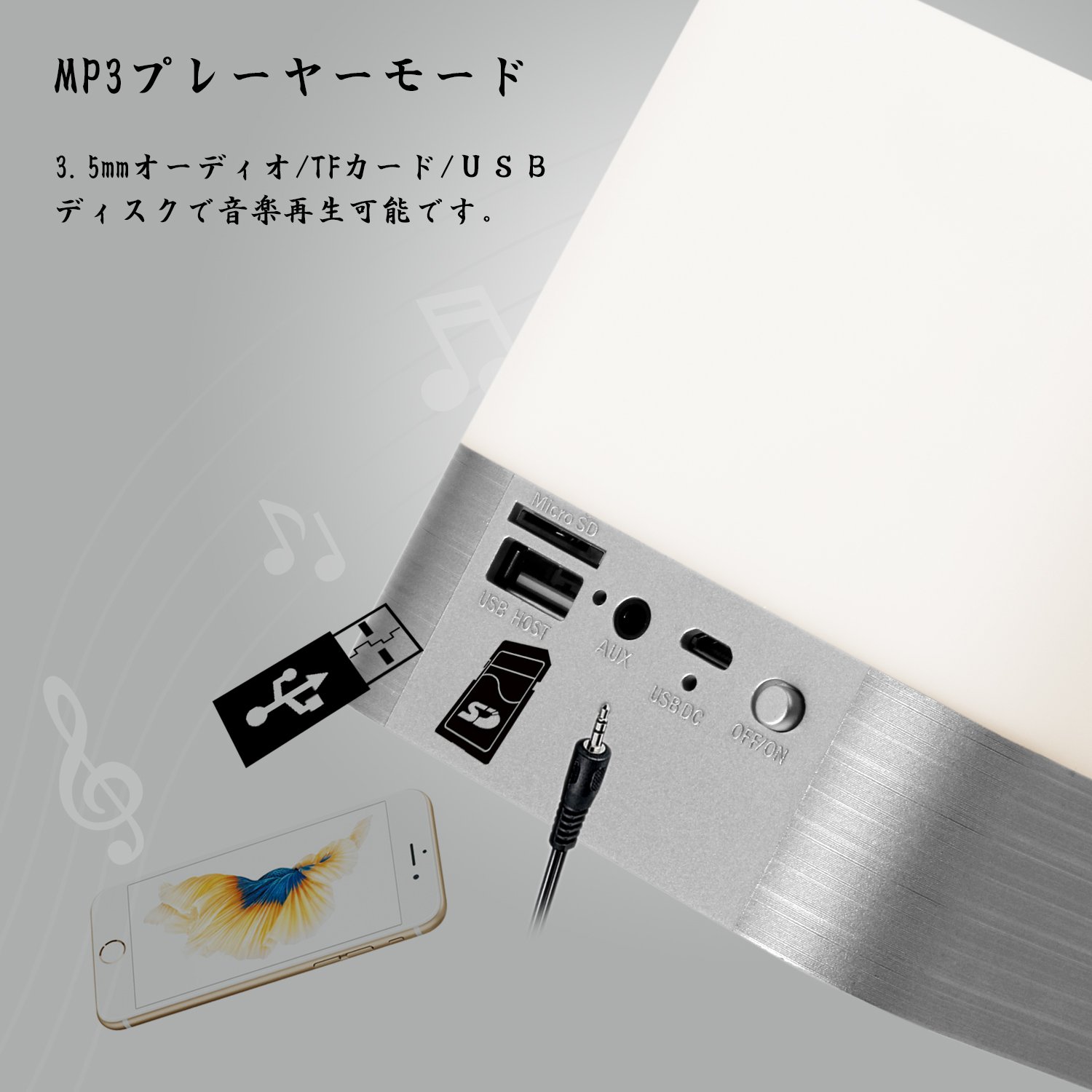 Bluetooth対応の多機能ワイヤレススピーカー。ワイヤレスでスマホなどbluetooth機器からの音楽を再生できるだけでなく、AUXケーブルでの接続、USBコネクタを通じてUSBメモリやUSBハードディスク、32GBまでのMicroSDカードからの再生にも対応する多機能な製品だ。ほかにベッドサイドランプや時計表示機能も付いている。
