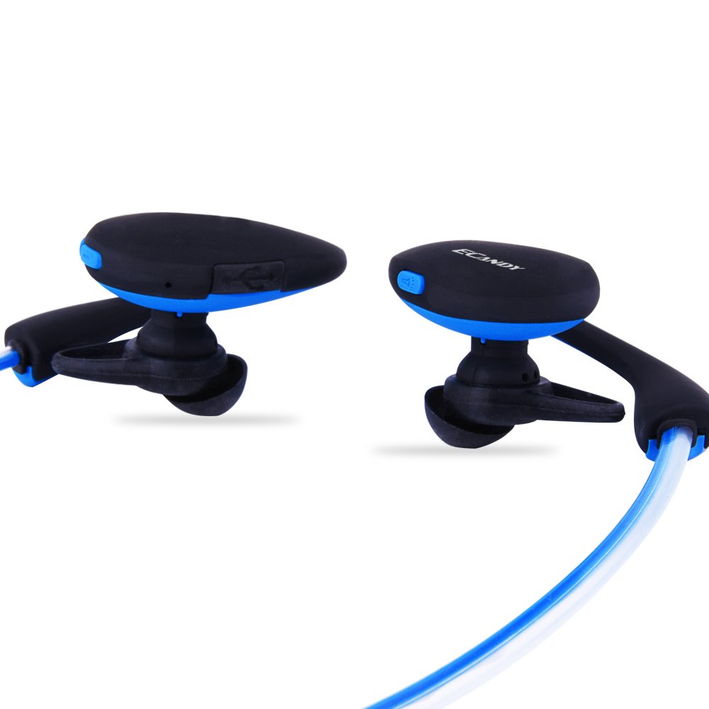ECANDY スポーツヘッドセットBluetooth4.1 ワイヤレスイヤホン LED発光 防水防汗 (ブルー)