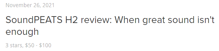 SoundPEATS H2は、急速に発展している市場において、トレンドを象徴する小さなサインであり、それは私たち消費者にとって素晴らしいニュースです。H2は、音は良いのですが、操作性、接続性、機能面で不足しています。この価格帯であれば、さらに優れた代替品を手に入れることができるはずです。